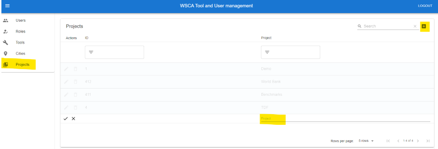 A project is the main unit of access management in the WSCU. A project is a collection of users and tools. Projects might also be associated with a location, such as a city or a region. This allows you to give access to a user for a specific location. For instance, you can give a user access to the WSC-Index tool for the City of Melbourne but not for the City of Sydney.