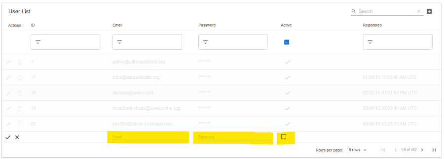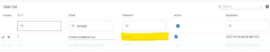 Fill in the required fields and click on the “tick” button to create the user. Note you should choose a strong password for the user. Further, the email address should be unique. You will need to send the username and password to the user.