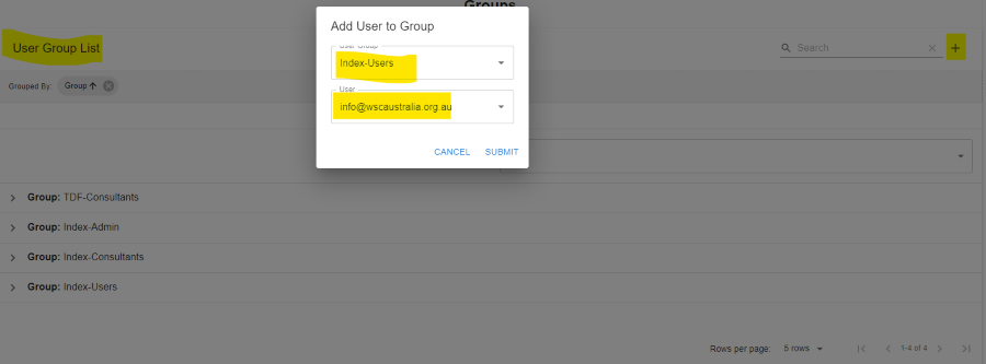 Users can be oganised into groups. This allows you to give access to tools and products to a group of users, without having to give access to each user individually.